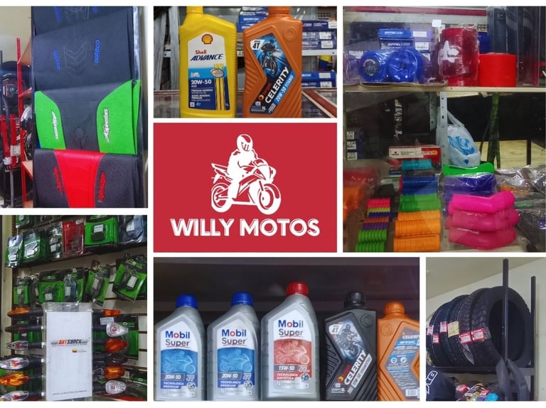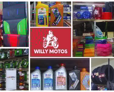En Willys Motos nos especializamos en la venta de accesorios, repuestos y servicios de mantenimiento para todo tipo de motos. Nuestro compromiso es ofrecer productos de calidad y un excelente servicio al cliente.